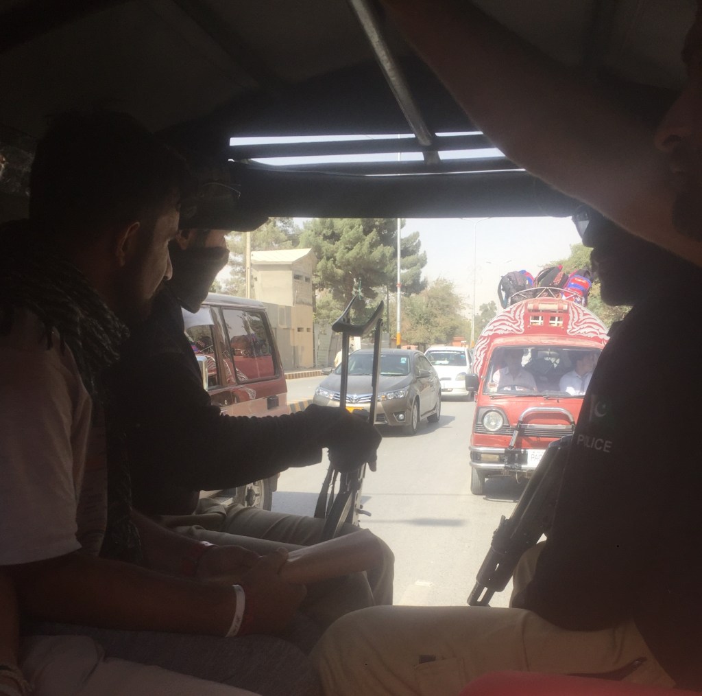En effet, la traversée du pays se fit sous escorte armée. Le gouvernement pakistanais offre gratuitement ce service à tout visiteur étranger. Il considère les voyageurs comme ses invités et, hospitalité oblige, ne veut prendre aucun risque pour la sécurité de ceux-ci